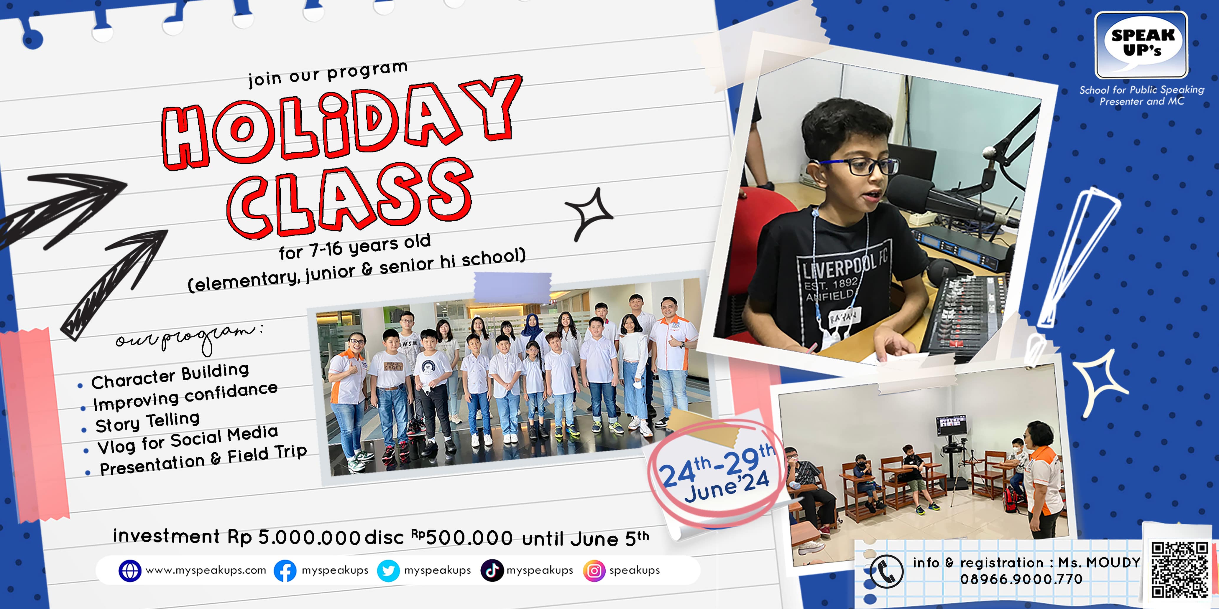 Bicara Soal Public Speaking, MC dan Broadcasting Glenn dan Meity memang pakarnya. Aturan utama dalam seni berbicara, menyelamatkan diri dari keseleo lidah, mencegah kebekuan dengan orang-orang yang masih asing, sampai melenggang anggun dengan kemampuan bicara yang mempesona diajarkan di SPEAK UP’s. Ini pelajaran penting bagi siapapun kita.
